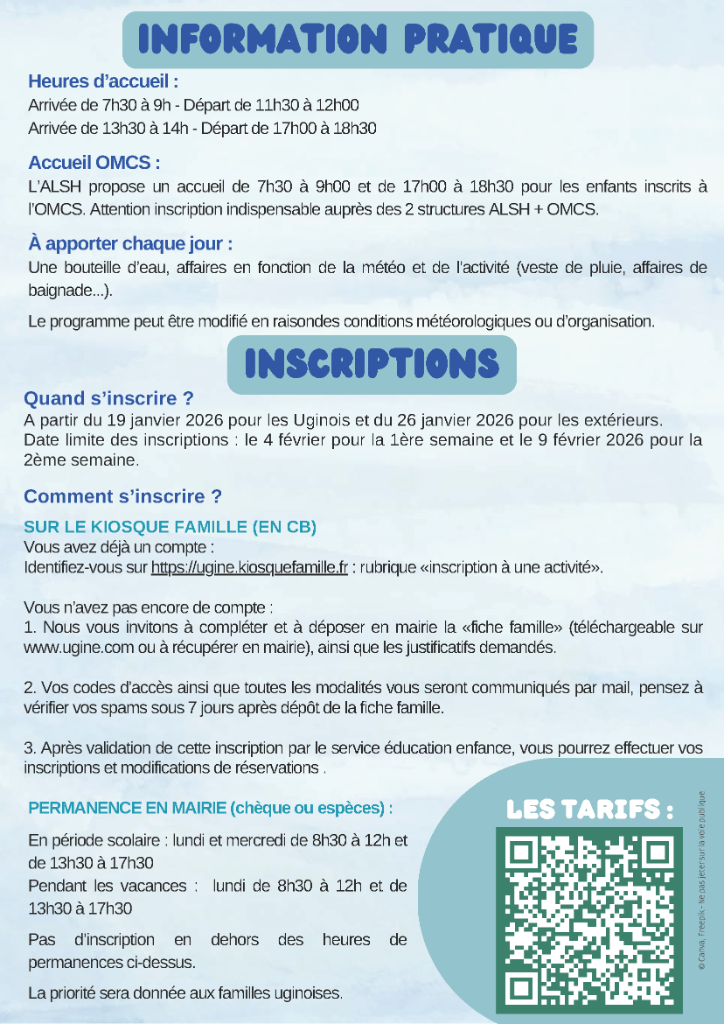 1. Nous vous invitons à compléter et à déposer en mairie la «fiche famille» (téléchargeable sur www.ugine.com ou à récupérer en mairie), ainsi que les justificatifs demandés.