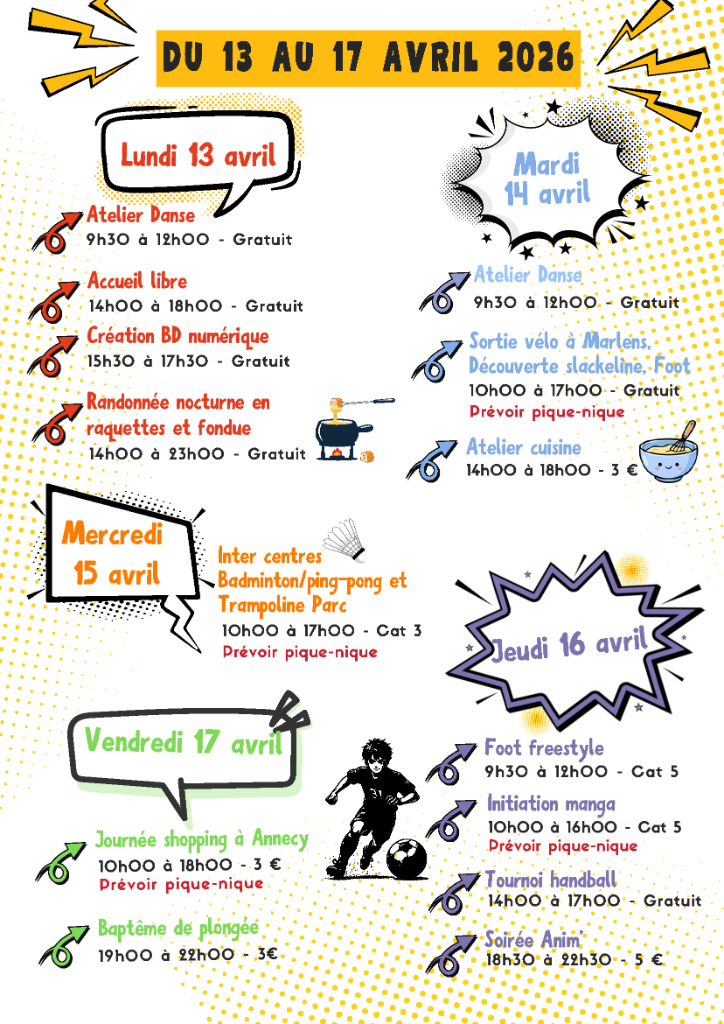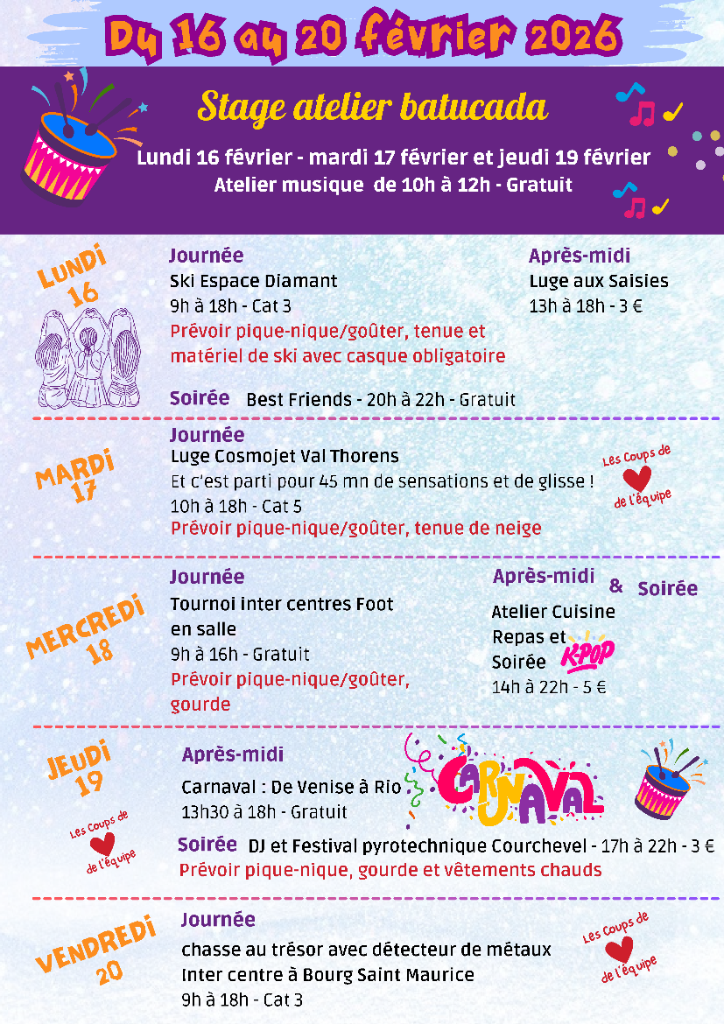 Tous les mercredis à partir de 14h, les animateurs mettront en place des activités telles que bricolage, cuisine, jeux de sociétés, tournoi de baby-foot, sports, sorties… |