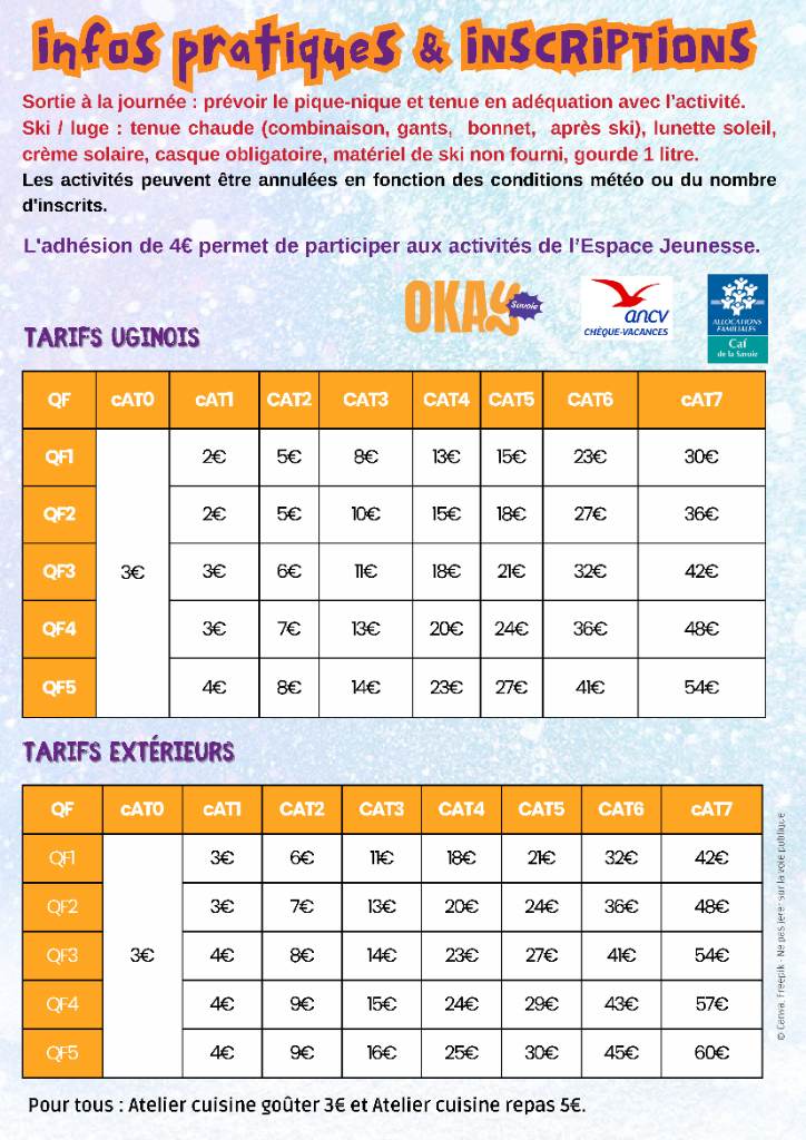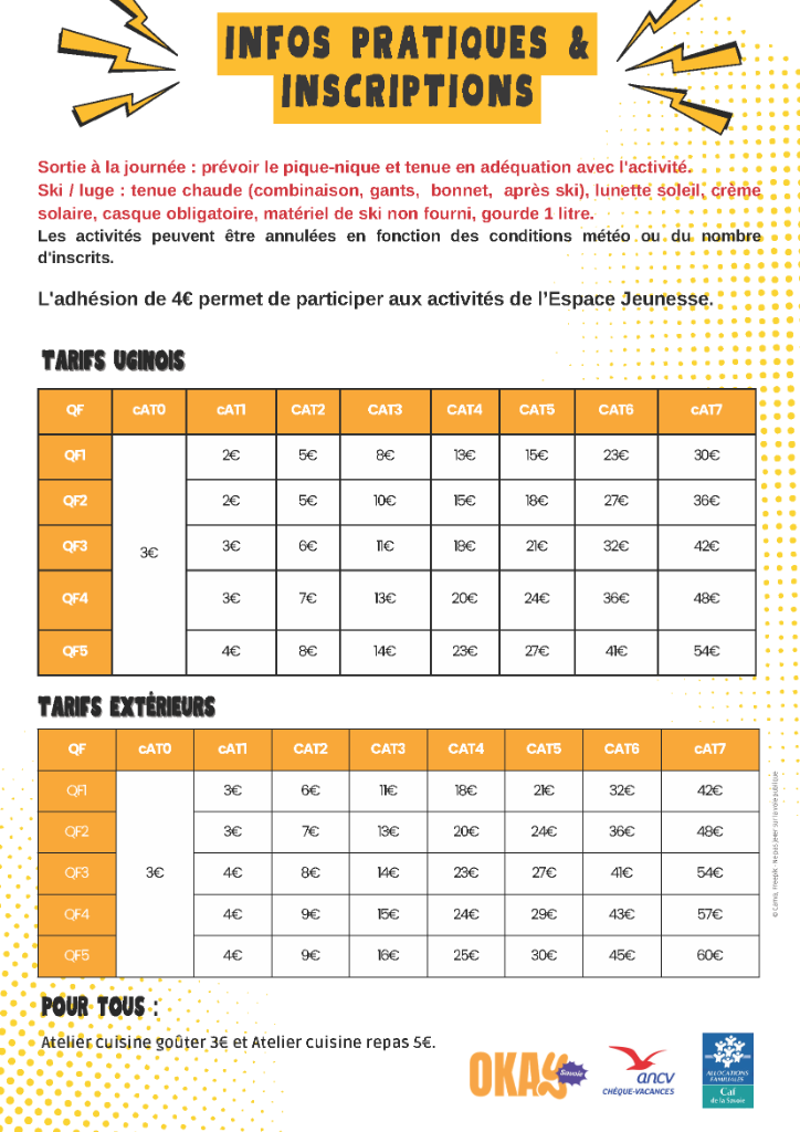 Liste des pièces à fournir : 1 photo d’identité récente (Résident Uginois uniquement) . Un justificatif C.A.F pour le quotient familial . Photocopie assurance en responsabilité civile